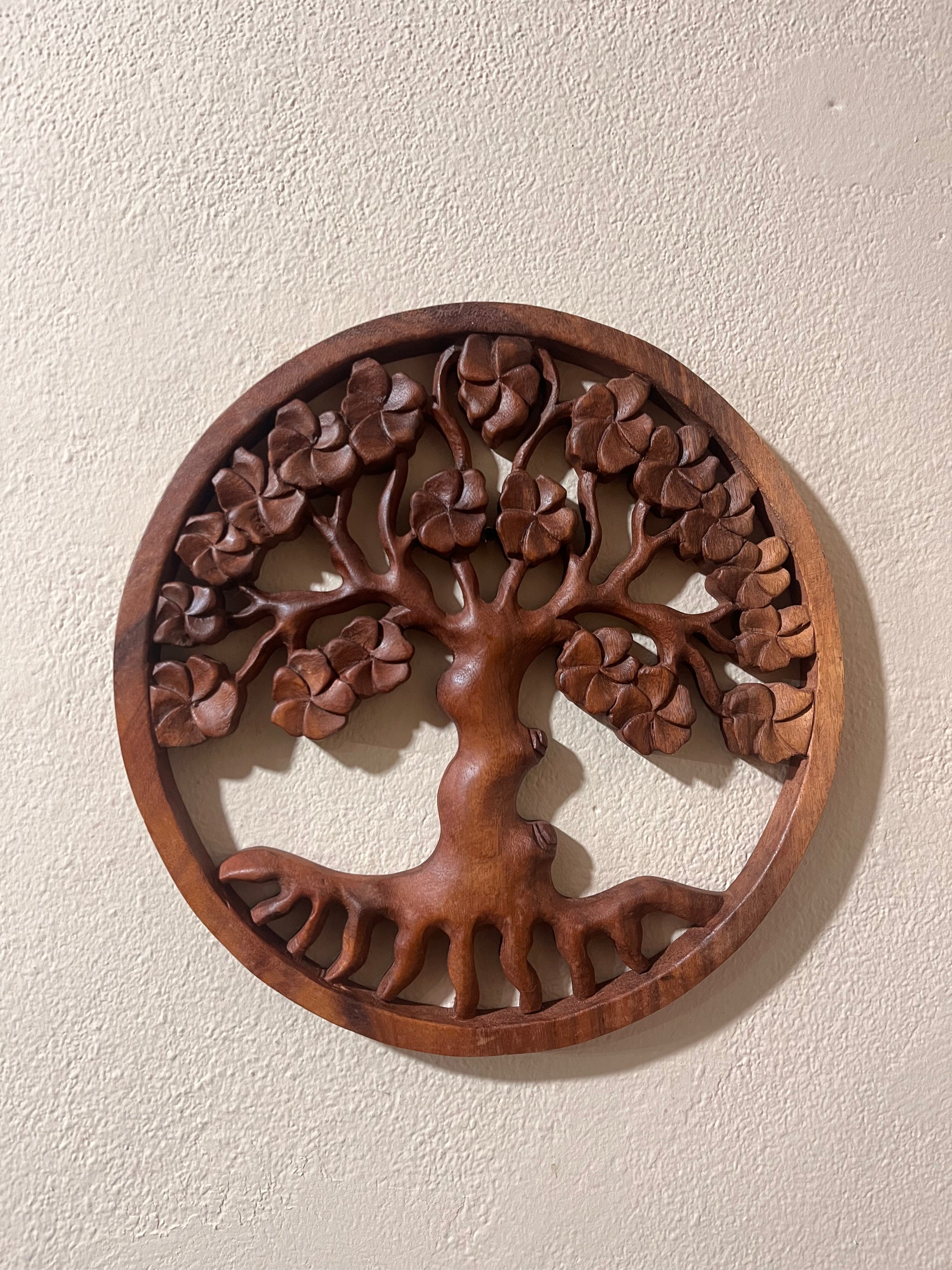 Produzida artesanalmente em Bali, Indonésia, esta mandala é esculpida manualmente por artesãos balineses, preservando técnicas milenares de escultura em madeira e a espiritualidade presente em cada criação.